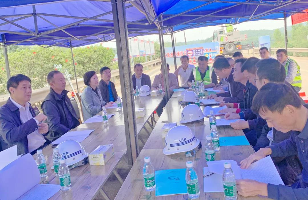 检查组沿着施工便道、钢便桥,检查拦砂坝浇注、桥墩开挖、钢筋绑扎等施工现场,登上主桥了解水毁及拆除情况,并在现场临时工棚召开会议,听取施工单位、监理单位、设计单位、甲方代表、专家组代表的汇报。
